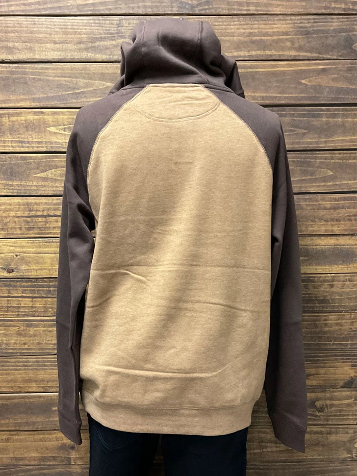 Kimes Ranch BLAZE 2 Mens Hoodie Brown – A colorblocked hoodie with a three-button placket and raglan sleeves, the Blaze 2 features an embroidered Longhorn logo a cotton blend, ensuring a consistent shape with every wear
