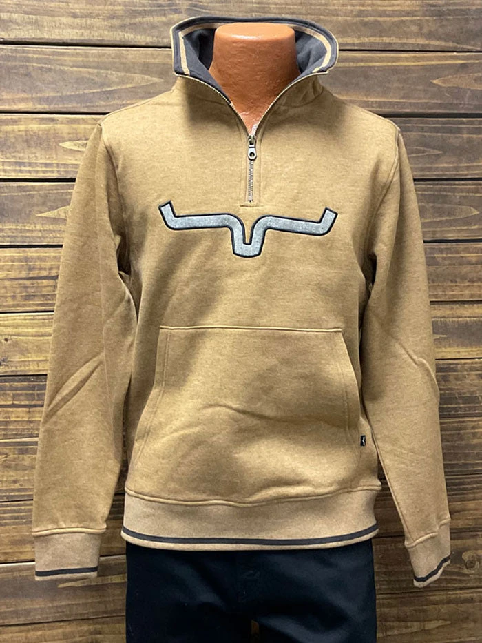Kimes Ranch FILMORE Mens Fleece Rusty Heather – Made from a heavy weight fleece, the Filmore Quarter Zip is the ultimate in comfort and durability. A quarter zip with a large embroidered longhorn logo applique, the hidden pouch pocket makes this a versatile, easy-to-wear piece