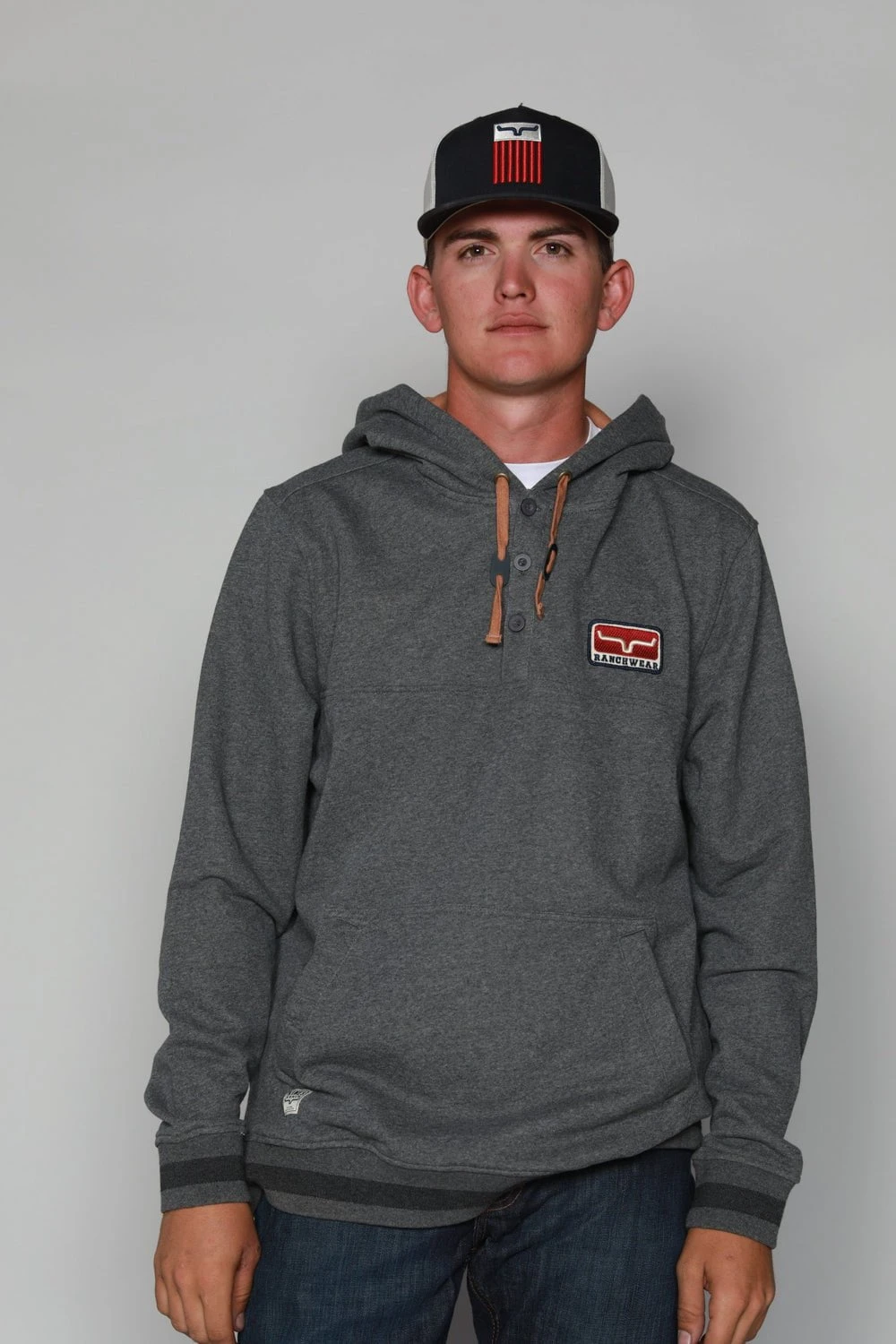 Popular among cowboys and cowgirls, Kimes Ranch’s product deliver durability and comfortableness for the trail, ranch or city. This particular item, made from 100% cotton french terry material blend features a woven kr patch, coordinating drawstrings, and kangaroo pocket.