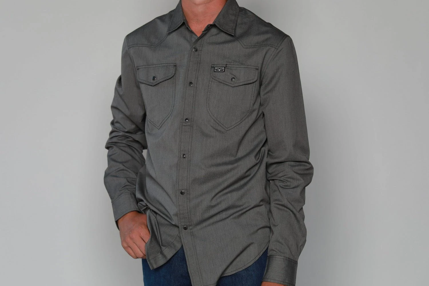 Popular among cowboys and cowgirls, Kimes Ranch’s product deliver durability and comfortableness for the trail, ranch or city. This particular item, made from 52% cotton/48% coolmax material blend features a western styling, technical coolmax fabric, and two pockets with rinse wash.