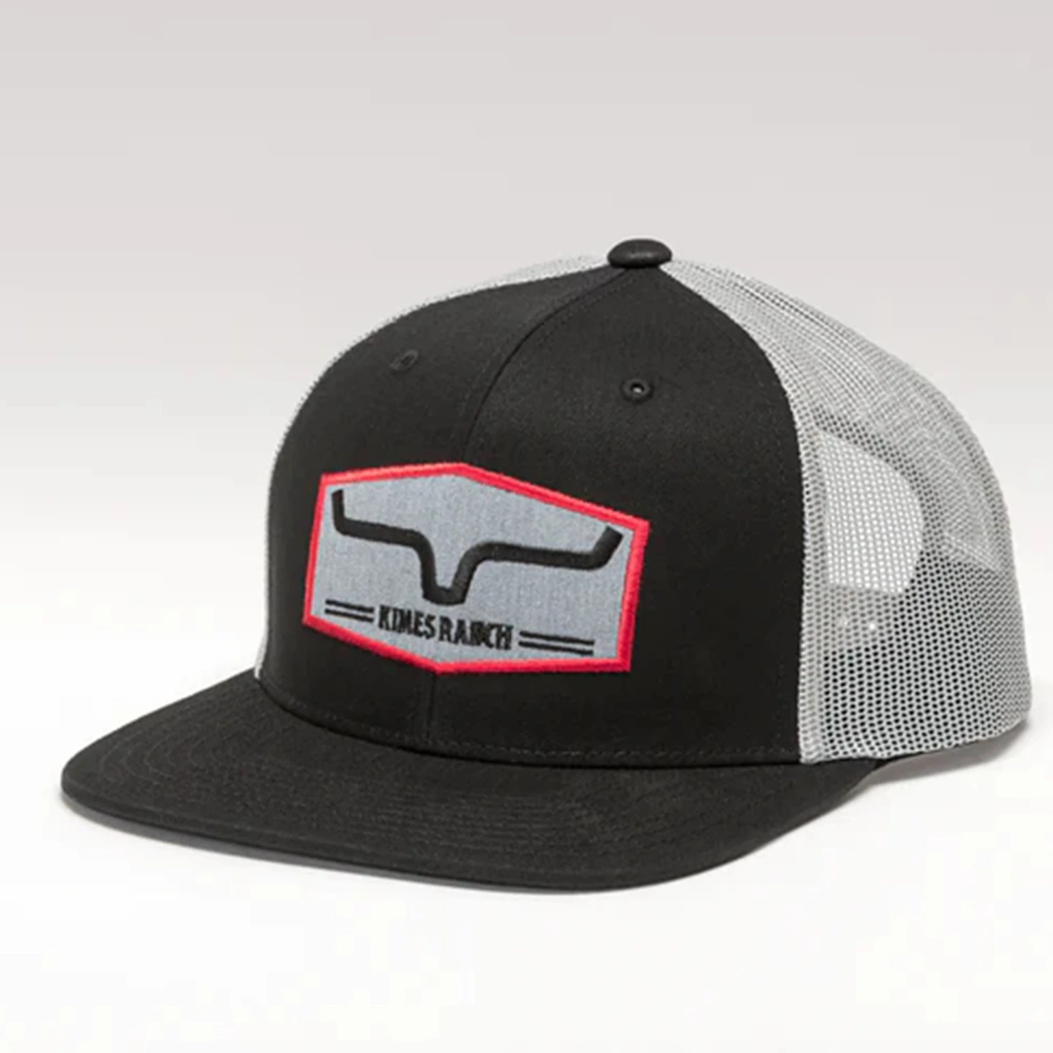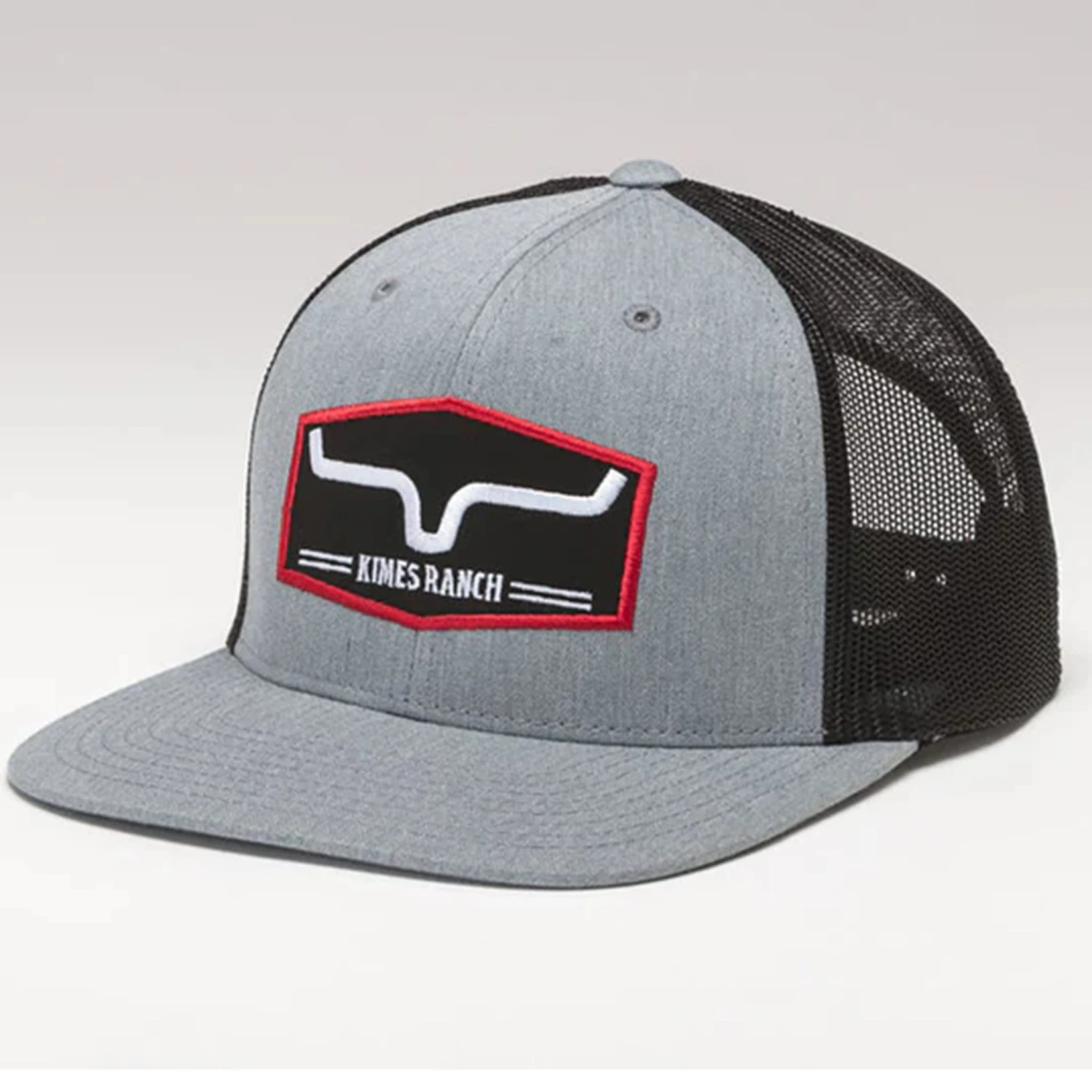 This Kimes Ranch cap is offered with a kool vintage looking patch! Kimes Ranch on a hayseed patch. Solid twill front and web mesh back for ventilation.