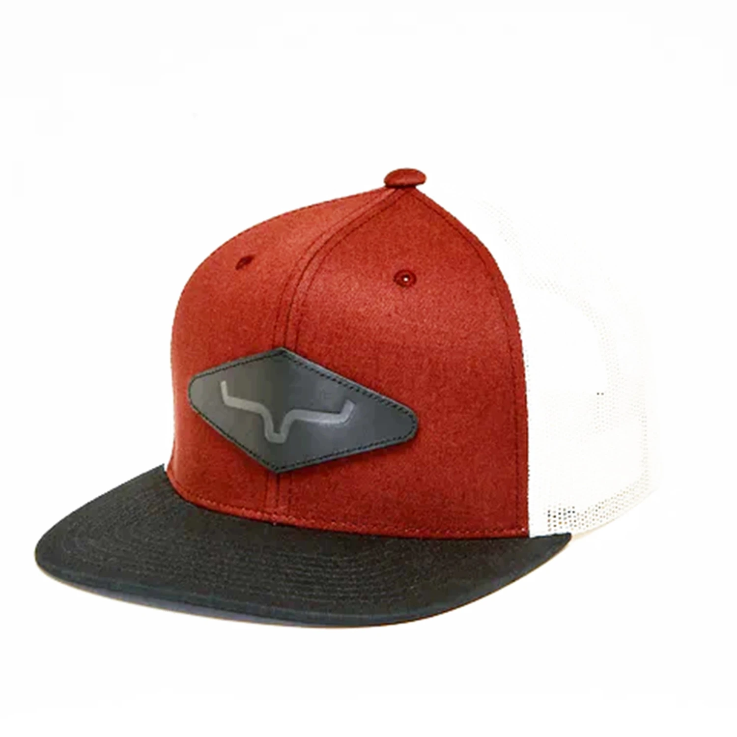 Kimes Ranch Yearly Trucker Cap is offered in a high-profile curved brim version with an adjustable backstrap for the perfect fit. The real leather patch has the Kimes Ranch brand!